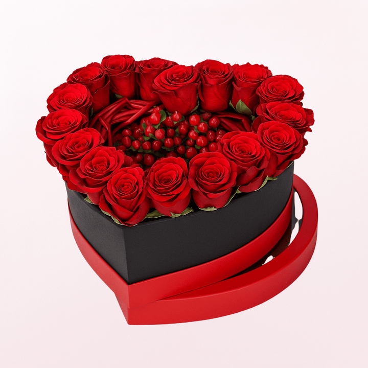 Roses come in different colours that hold a specific message for the recipient in a unique way. Deep red roses represent the deep, real, and everlasting love with a partner. We offer an extraordinary gift item that is a stunning arrangement of open-heart red roses with hypericum in a Heart-shaped gift box. You can send this beautiful arrangement of incredible flowers on Valentine's day or any other occasion that can easily capture your love's attention. These flowers are hand-picked from the farm that give a guarantee of freshness & vibrant. The recipient will admire your beautiful choice, we assure you.